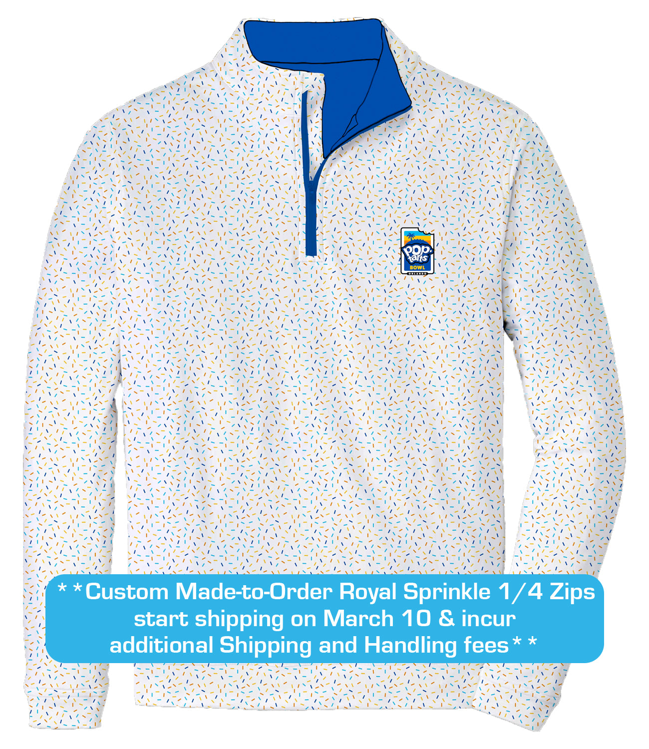 **Custom Made-to-Order White Sprinkle 1/4 Zips start shipping on February 23 & incur additional Shipping and Handling fees**